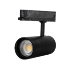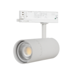 Proyector de carril de diseño actual y gran versatilidad, ideal para espacios comerciales, expositivos y proyectos contract. Compatible con carriles estándar tipo GLOBAL TRACK, se integra fácilmente en múltiples instalaciones y permite adaptar la iluminación directamente en obra, simplificando el proyecto y aportando mayor flexibilidad con un único producto.